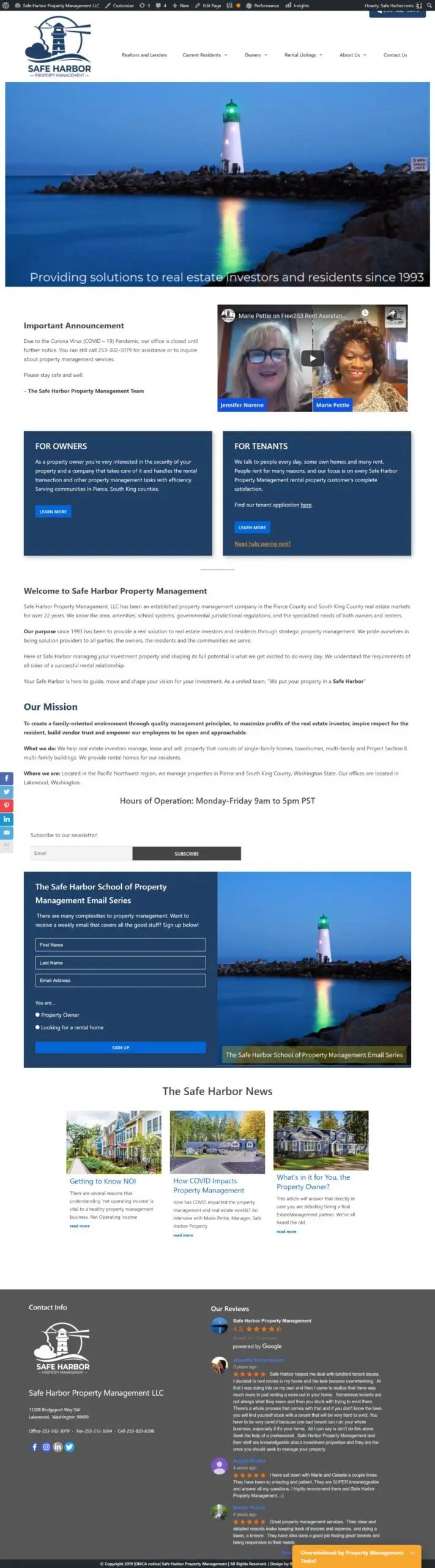 Safe Harbor came to us with two low functioning sites, no design or SEO, no online marketing. We created a brand for this small property management firm in Lakewood, WA. We established and promoted their brand story on a new web site, social media and search engines. They enjoy quality leads and many brand compliments and high brand recognition as a result of our work.